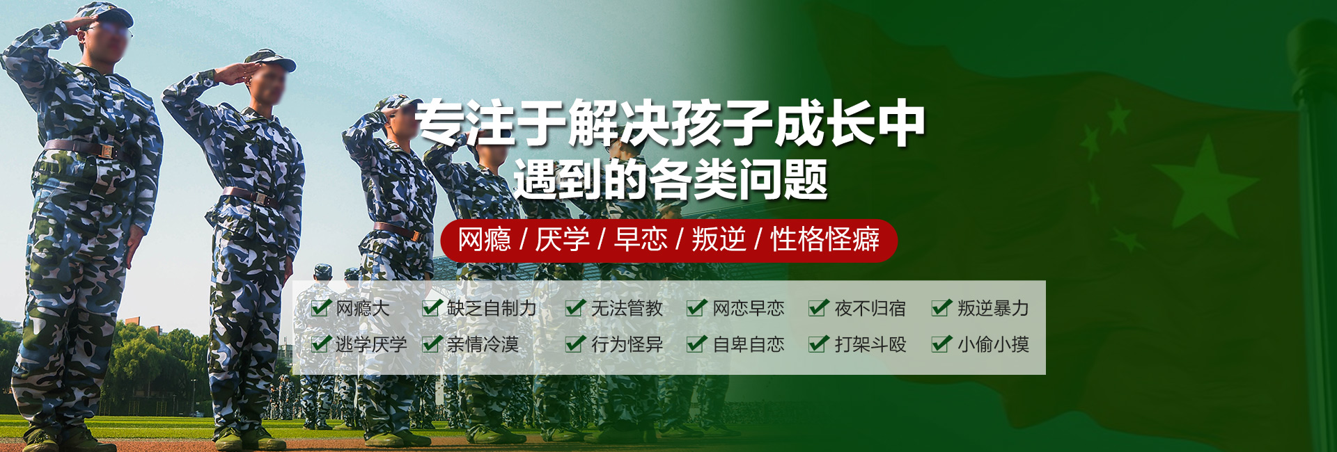 重庆瑞祥素质教育是专门针对8-18岁孩子在叛逆期各种行为矫正的正规办学基地我们有一对一心理老师进行心理疏导教官24小时陪同帮助纠正因沉迷游戏导致的一些不良行为习惯的孩子改变一个孩子幸福一个家庭